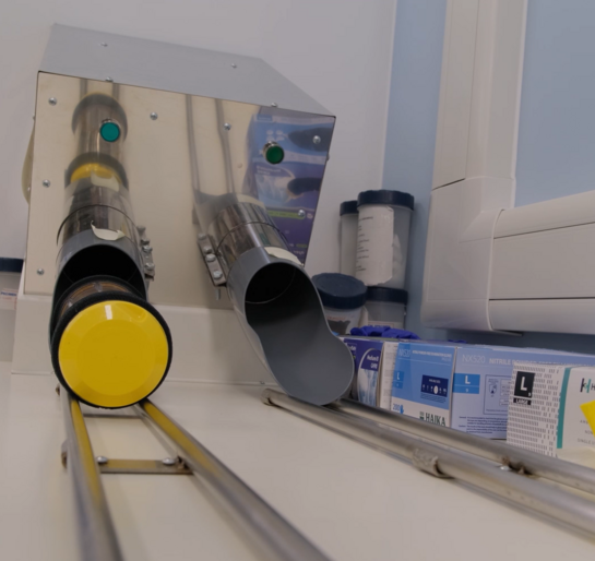 The Zos & Ork are purposely combined for high-throughput labs. They can be installed as a send-and-receive setup or used separately: the Ork as a smart receiving station, the Zos as a multi-carrier dispatch unit. Featuring soft arrival technology, RFID+ functions and auto-return, this setup ensures maximum speed with minimum effort.